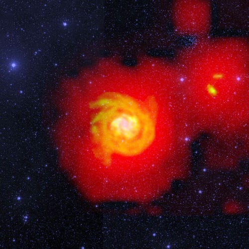 Хотя астрономы давно полагали, что в теории массивная галактика может высасывать газ из менее крупных соседей, достоверно выявить следы такого процесса не получалось. А теперь обнаружена именно та близкая к нитевидной структура, которая может быть холодным потоком «воруемого» газа.